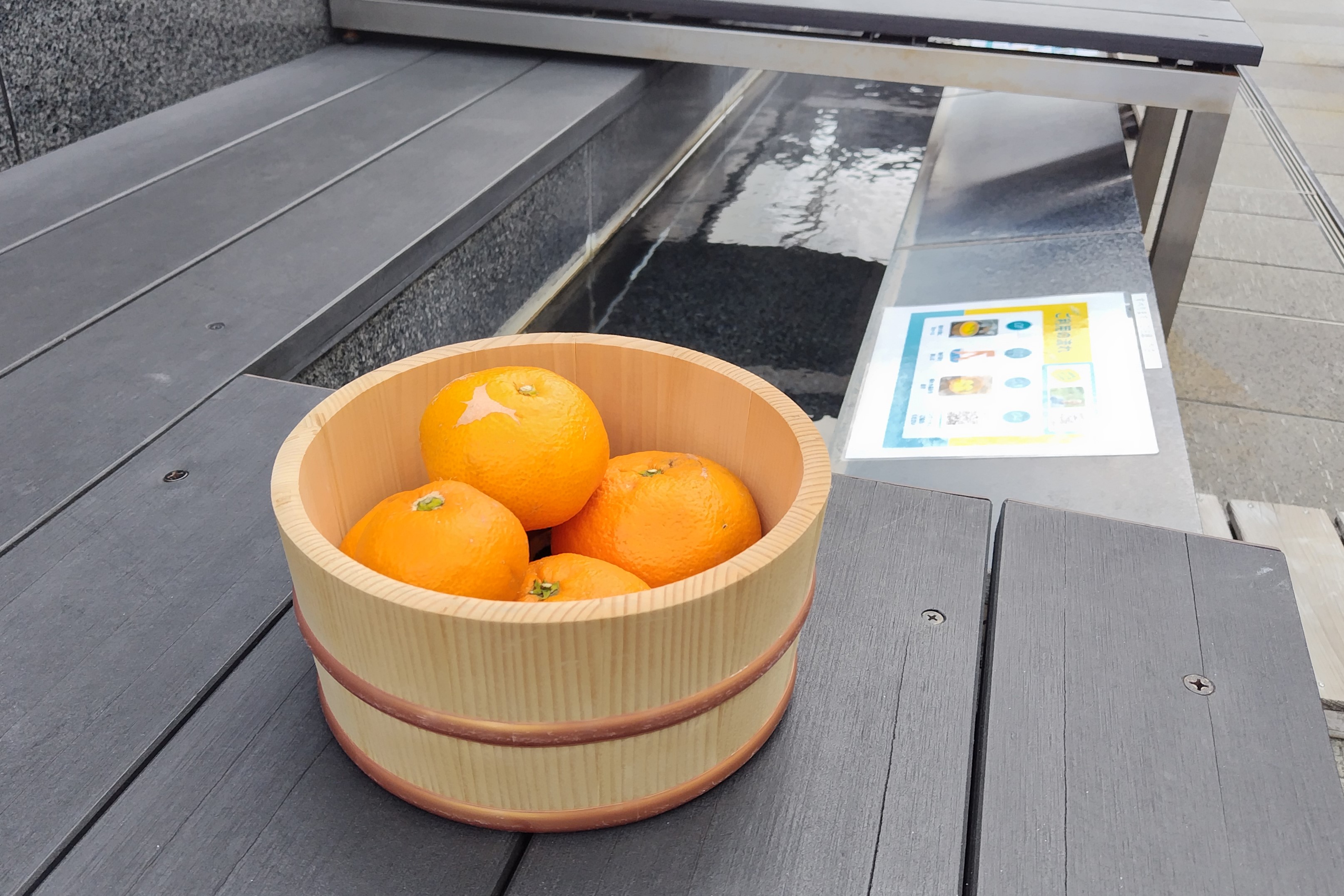 足湯カフェにてみかん湯を開始しました。1/16(金)~1/31(土)の期間限定です。