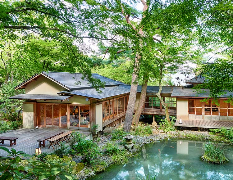 쇼와 초기의 일본 가옥을 개조한 운치 있는 음식 시설 ‘가이카테이’는 메이지 중반,