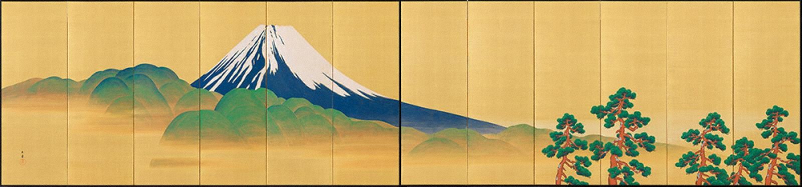 「DOKI土器!土偶に青銅器展」期間中、3階展示室第3室では、今上天皇のご即位を記念し、「令和の繁栄と安寧を願って おめでたい絵」コーナーを設けています。下村観山「旭日」、川合玉堂「冨嶽」など吉祥モチーフを扱った作品によって令和元年を寿ぎます。ご来館の際には、ぜひ常設展示室にもお立ち寄りください。